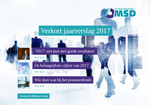 Verkort jaarverslag 2017 ‘2017: een jaar met goede resultaten’ Meer lezen De belangrijkste cijfers van 2017 Meer lezen Wie doet wat bij het pensioenfonds Meer lezen Download volledig jaarverslag